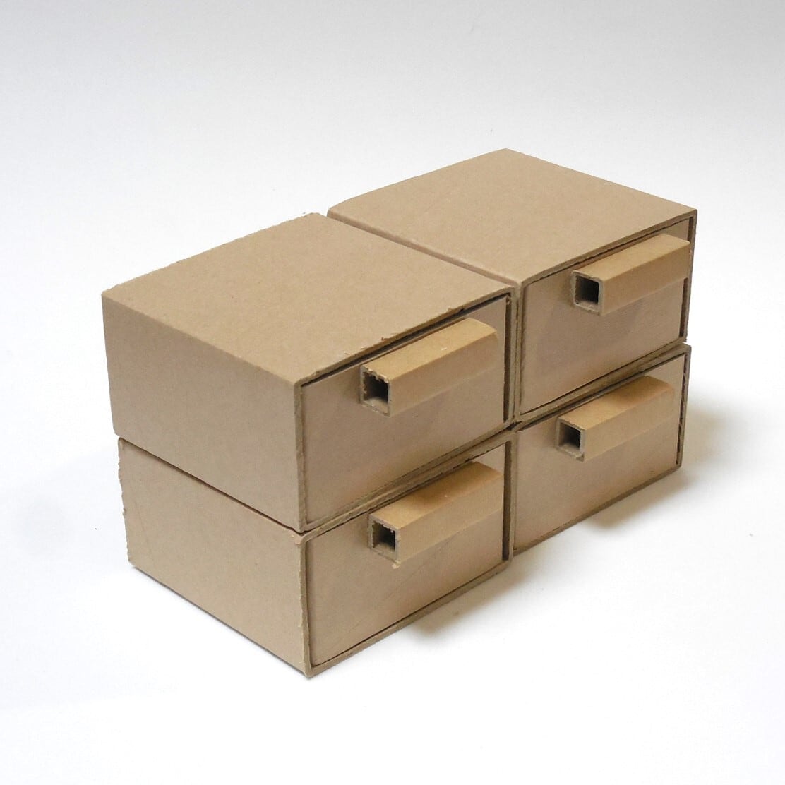 角紙管の本体、引手と段ボールの底板のシンプルな部材構成です。